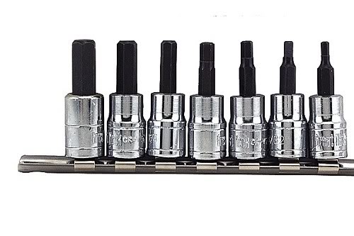 When you get ready to pull your front calipers, make sure you have a 3/8" hex wrench (allen wrench) The caliper mounting bolts have a 3/8" hex head. The socket on the head of the bolt points inward toward the fender liner (away from the tire). There are two mounting bolts on each caliper. I use a 3/8 drive socket type hex wrench like these in the picture. You can buy them individually at auto zone or in a set. I think they are about $5.00 for the single. Attachment 37187 |