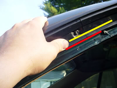 It's difficult to say if any water continues to come in. When I had the entire interoir out, it was very easy to see puddles in the floor pans. I still had a small drip on the driver's side that I corrected before reinstalling the interior. I actually ran water from the hose over the roof with the door seals removed for testing. If I had to do it over again, and I just might when it gets painted, I would do 2 things different: I would use butyl rubber instead of the rope caulk mostly because it's black instead of brown and I would apply it in a different spot. The yellow line shows where it is currently and the red line shows where I should have put it. Attachment 78022 |