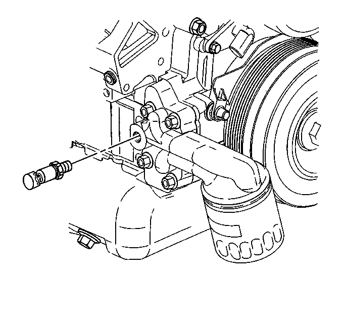 if you feel above the oil filter, you will feel a pigtail going into what feels like a giant nut. its 7/8" if i remember correctly. you will need a large open end to remove it. i can almost guarantee that is you're problem.