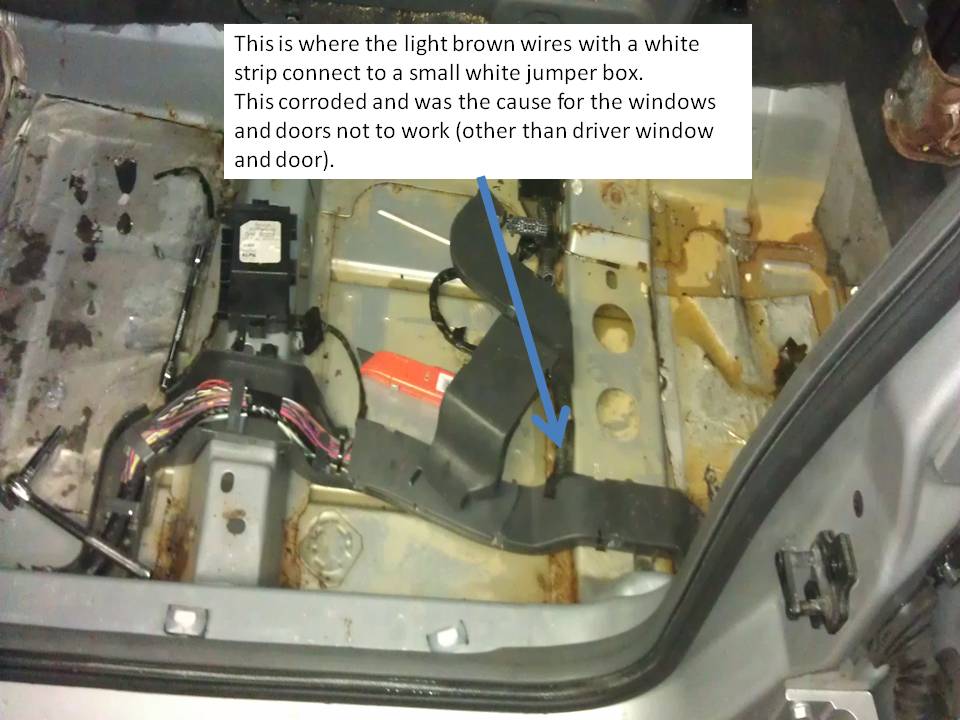 Just returned from six months in the Middle East, and found the floor on the 2001 soaking wet. The driver door/ electronics work, but the electric door locks and windows do not work on any of the passenger doors. The keyless entry does lock/unlock the driver'* door, but not the passenger doors.