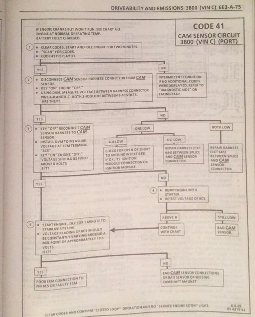While searching to see if I could access the magnet by dropping the oil pan (no), I located the Code 41 diagnostic tree and circuit diagram in my garage manual. I will attempt to post the pages for posterity.