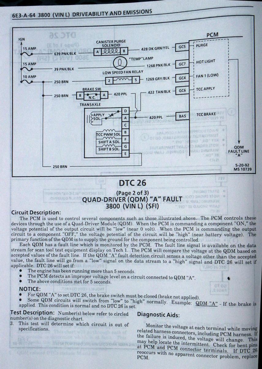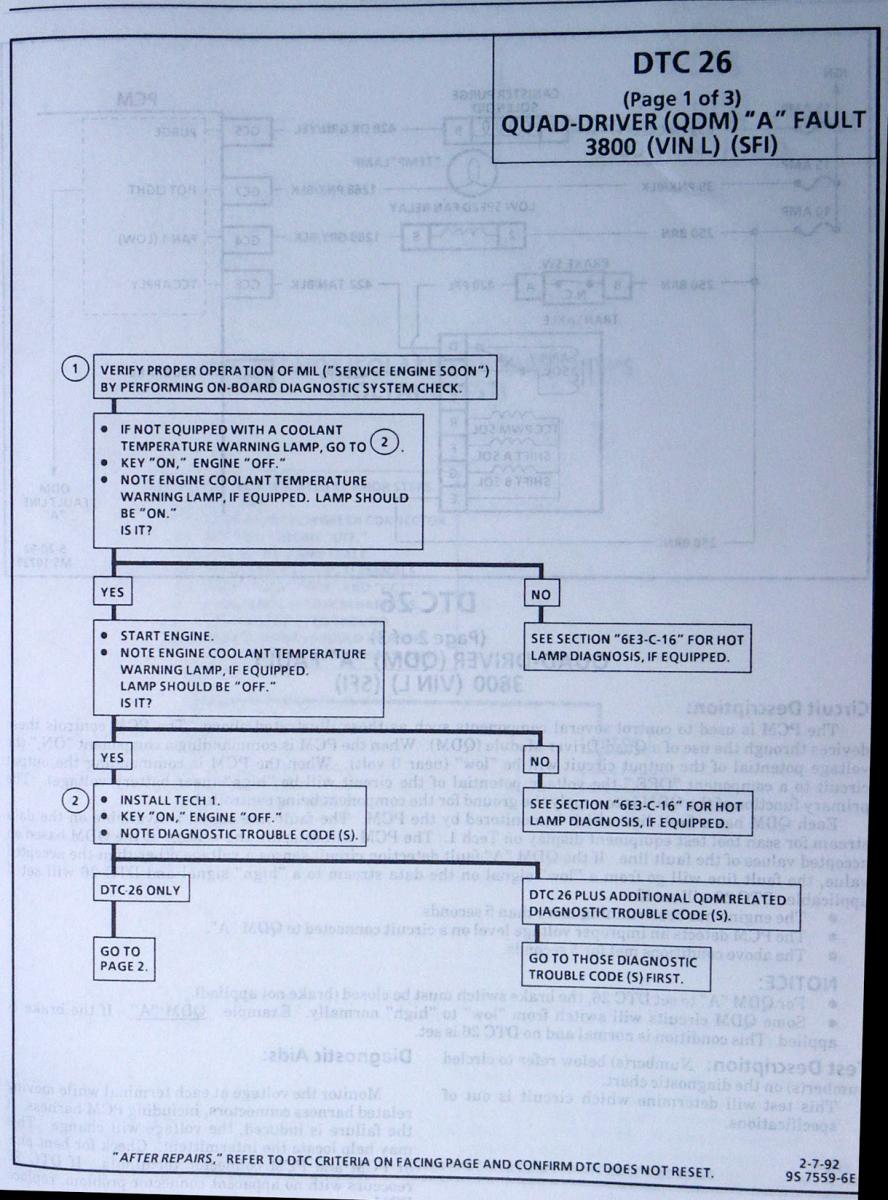 1992 buick lesabre code 26 qdm 1 failure