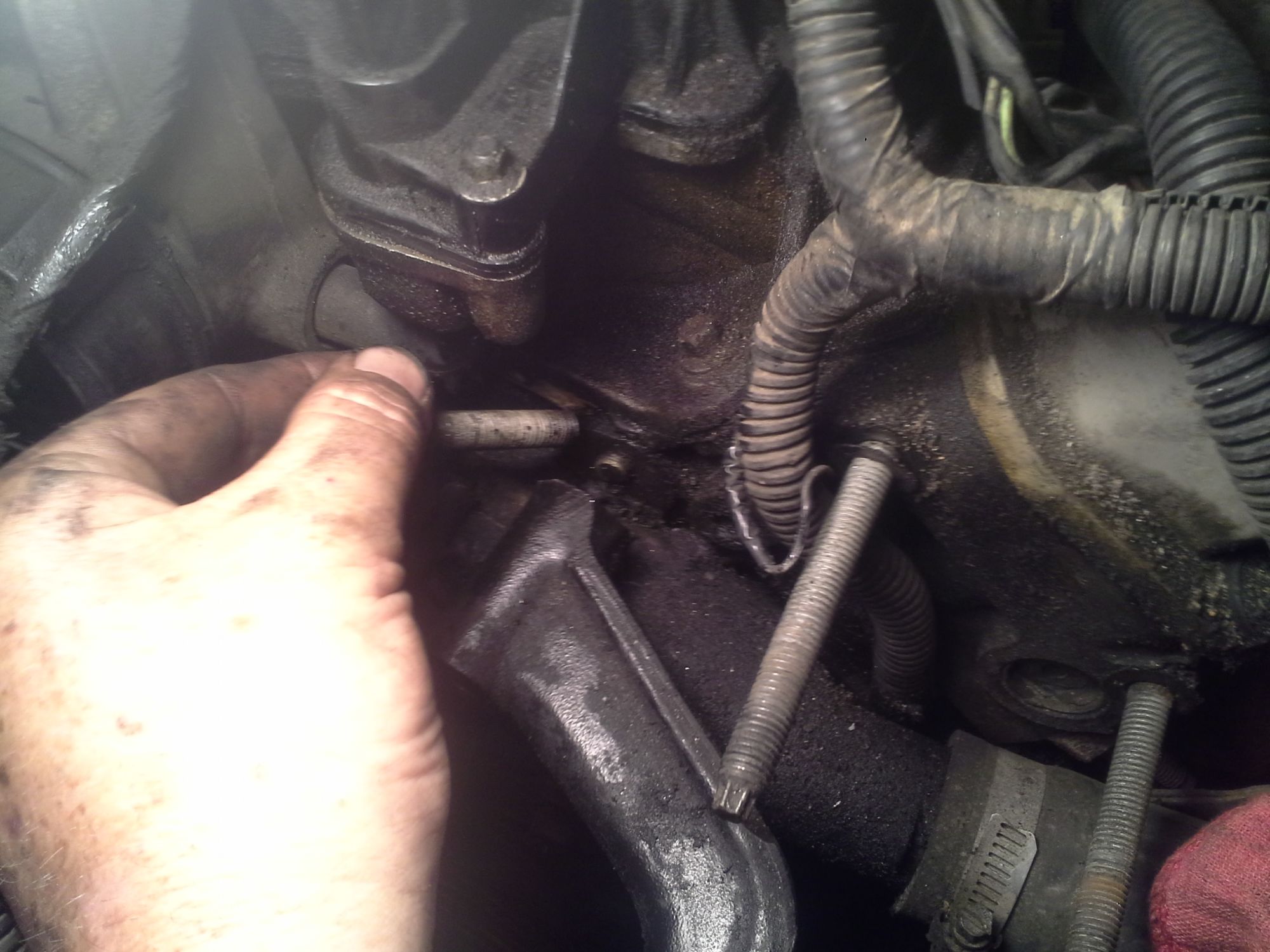HI! Newdie. IMy son hit a giant bankment of some type in SC when we had the huge flood a few months ago. He said it made a loud pop sound on pass side under hood. Problem is, he waited till now to tell me. That sound was a bolt broke in the block. Theres a bracket thing that goes around the motor mount where the serpentine belt is. It looks like a boilt is on the right side of it and 1 on the left side of it. The right side one is broke and sticking out of the block about only an eigth of an inch maybe.