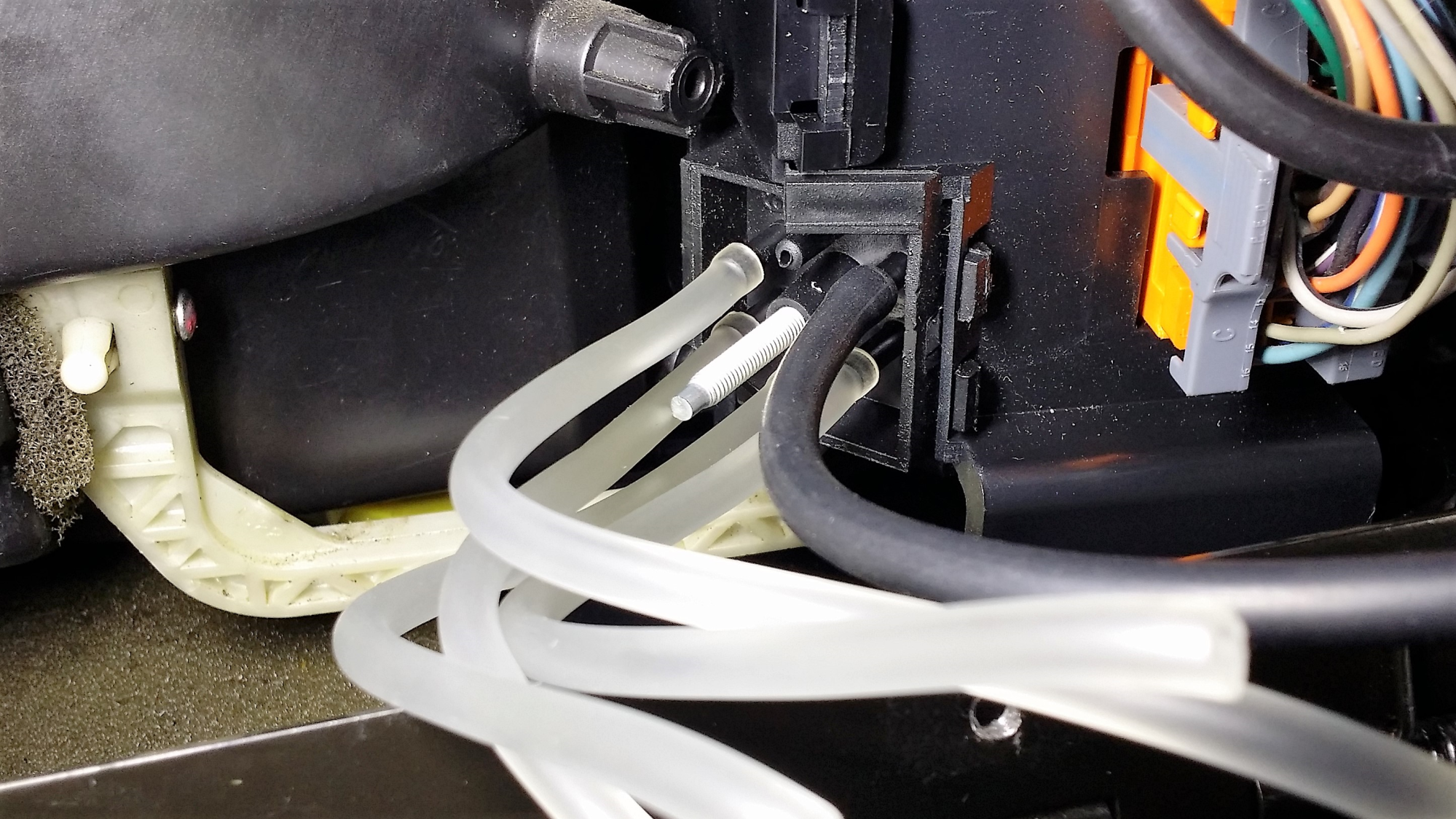 in this picture I attached 4 white tubes to the nipples on the programmer and a black tube to the vacuum line that has an orange splice