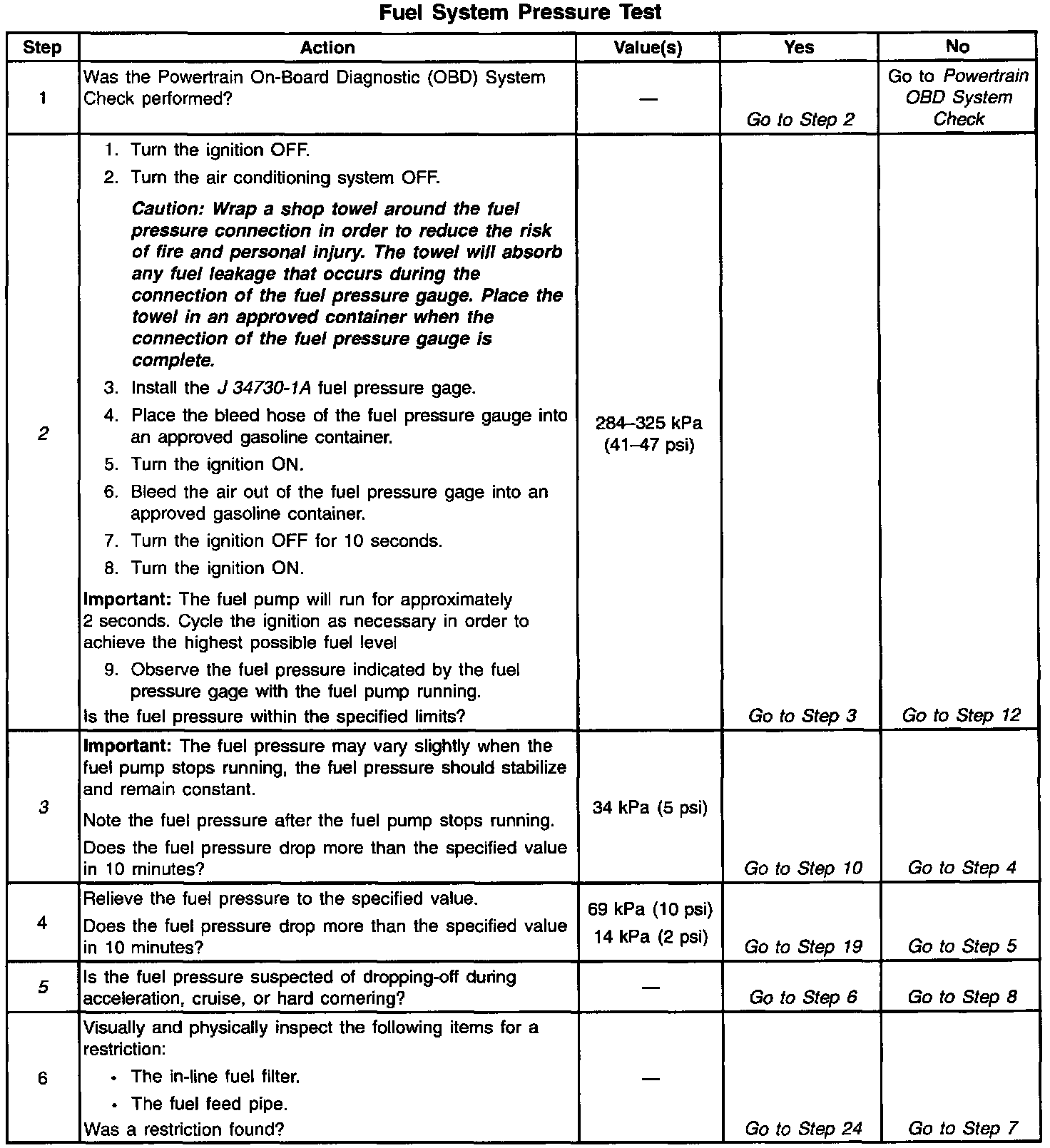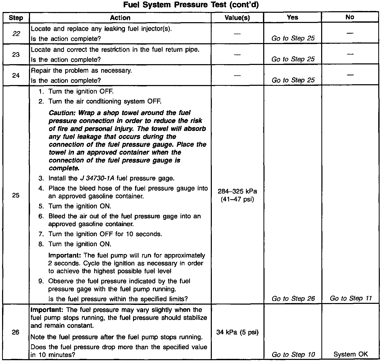 Home >> Buick >> 1998 >> Century V6-3100 3.1L VIN M SFI >> Repair and Diagnosis >> Powertrain Management >> Fuel Delivery and Air Induction >> Fuel Pressure >> Testing and Inspection