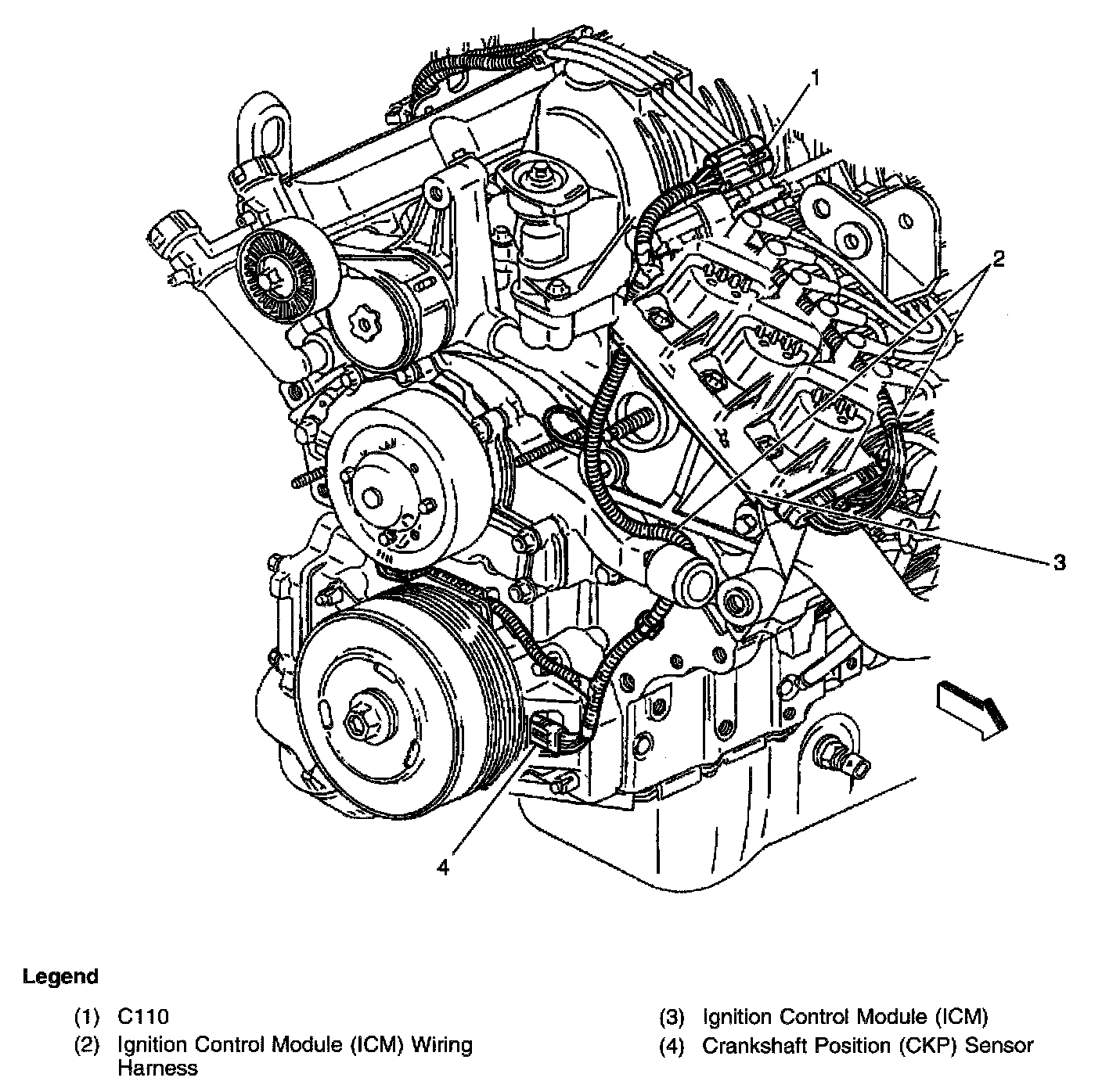 ^Ignition control bypass-During initial cranking, the PCM will look for synchronizing pulses from the camshaft position sensor and the 7X crankshaft position sensor. The pulses indicate the position of the #1 piston and the #1 intake valve. Five volts is applied to the bypass circuit at precisely the same time these signals are received by the PCM. This generally occurs within one or two revolutions of the crankshaft. An open or grounded bypass circuit will set a DTC P1351 and the engine will run at base ignition timing. A small amount of spark advance is built into the ignition control module to enhance performance.