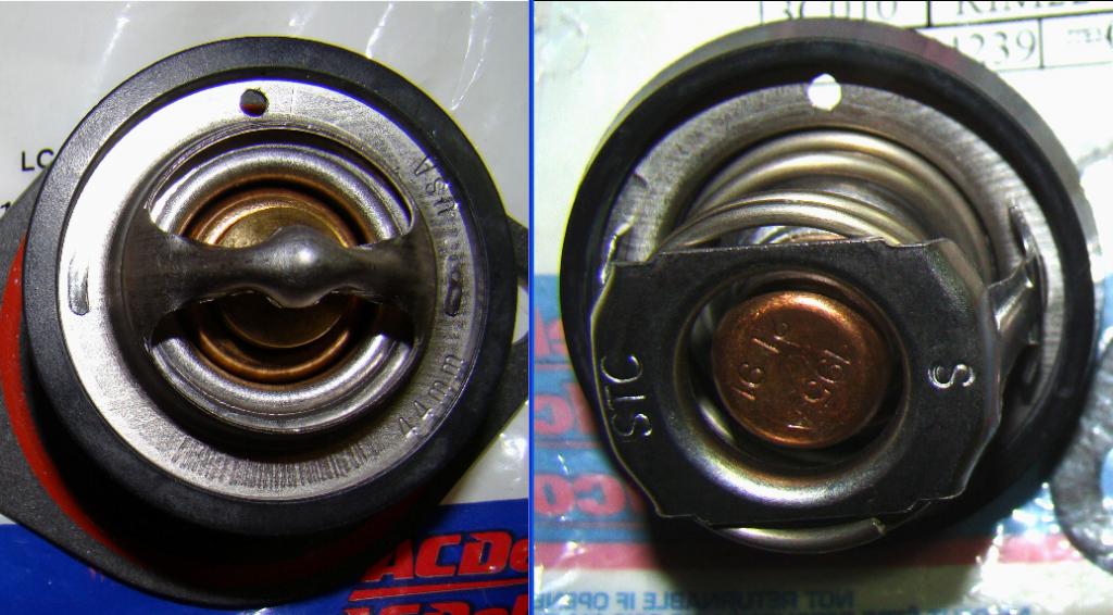 The correct thermostat is 195 degree. Good to drill a little hole to assist in air bleeding!