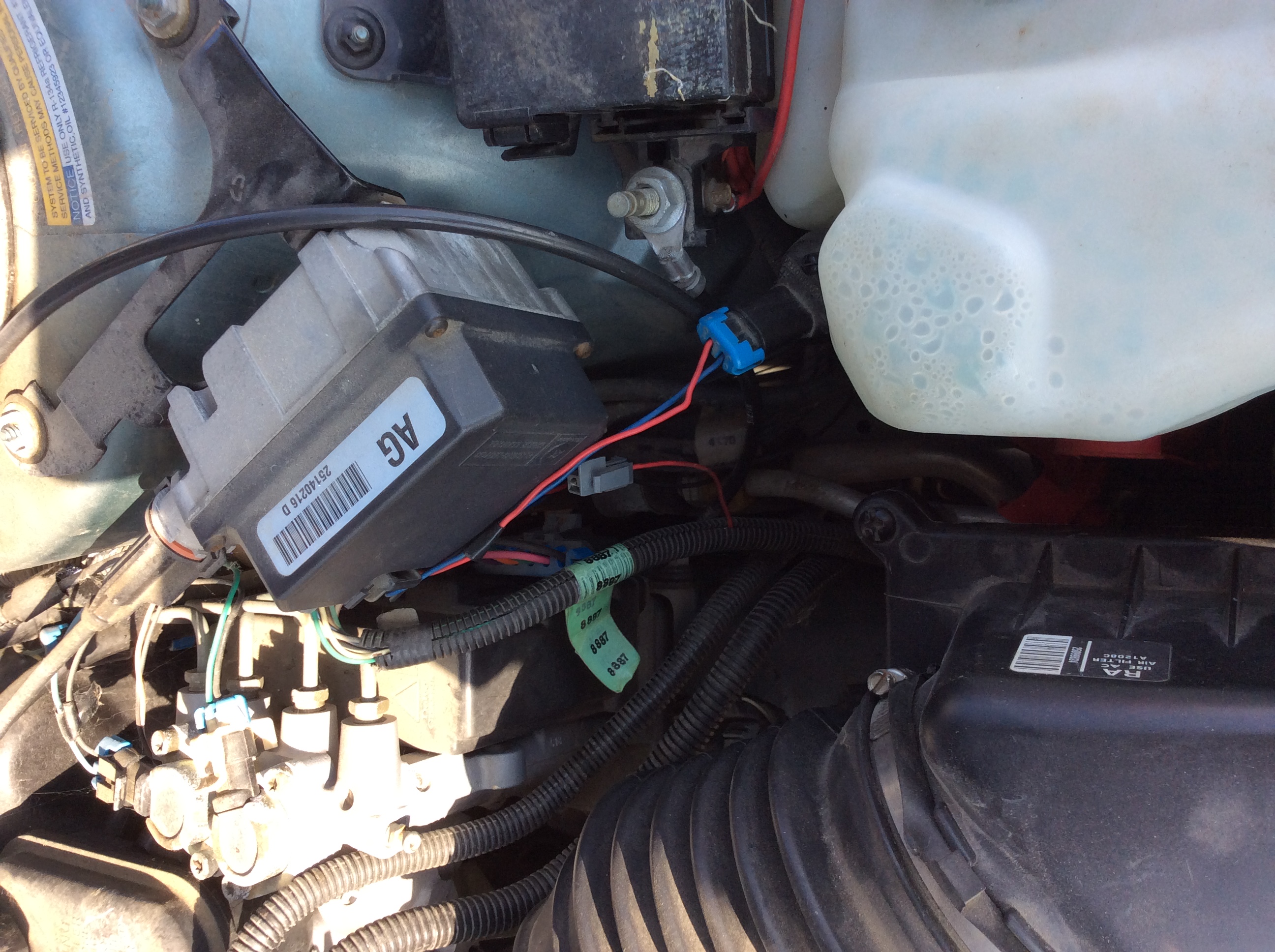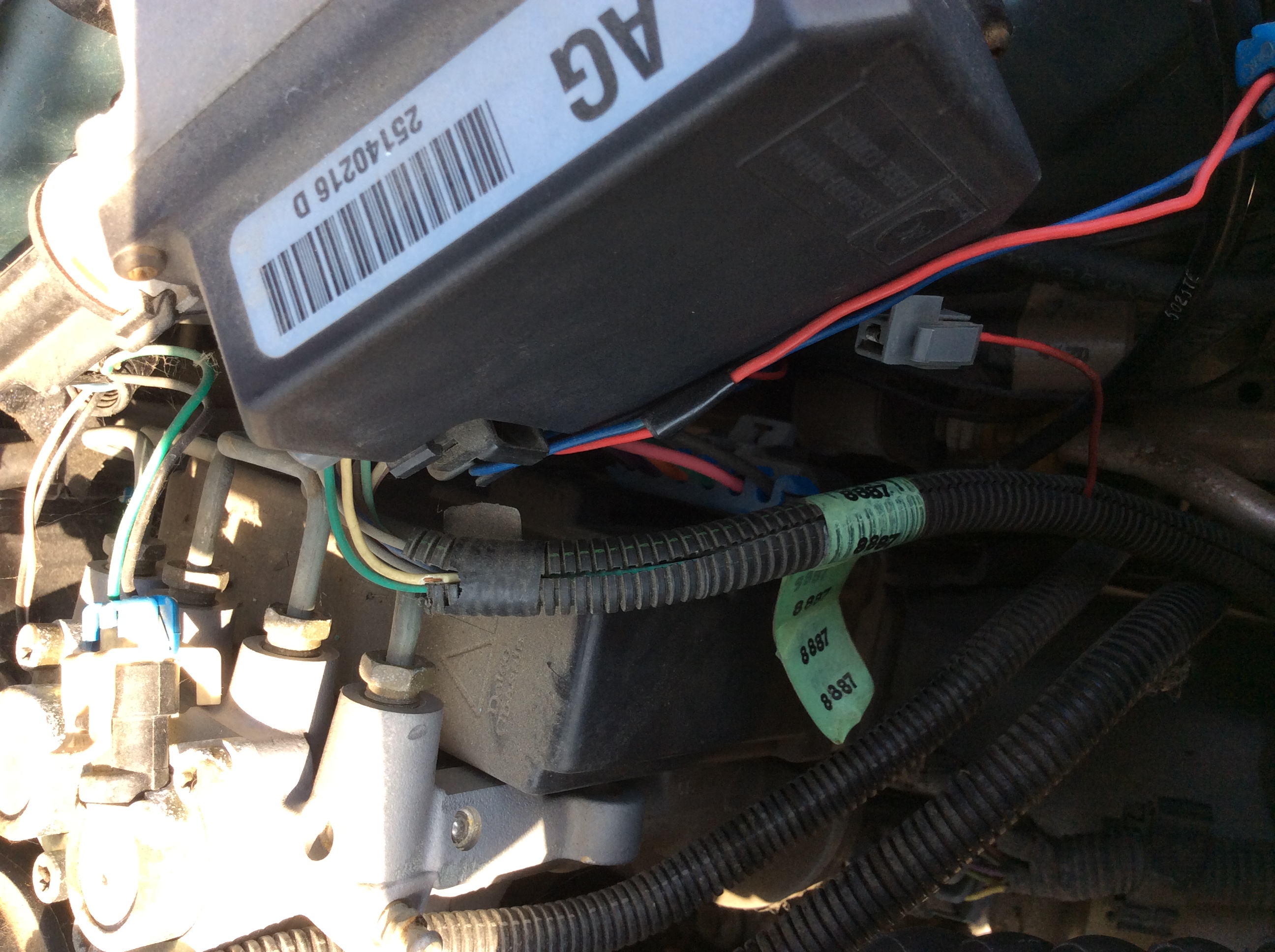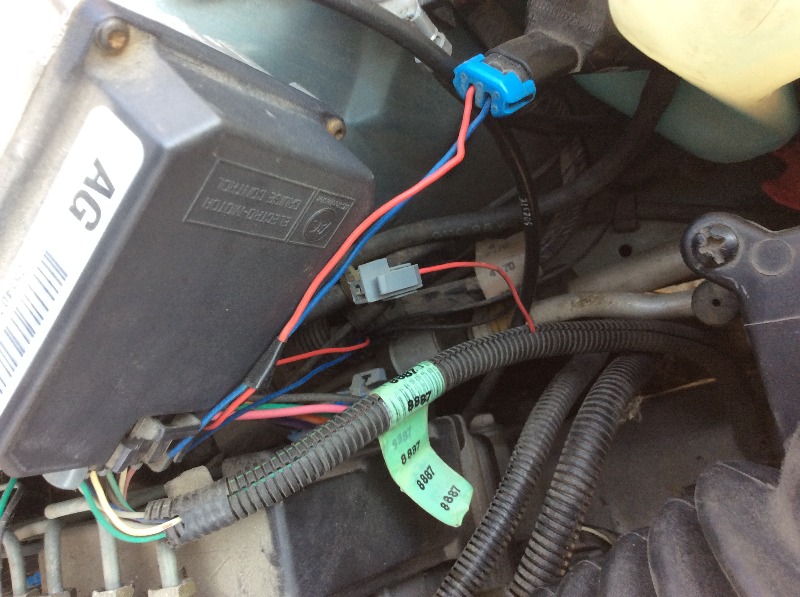 it'* a V6 3.8 liter engine. It'* my mom'* car and we need to sell it for her. it runs well, (some brake work needs to be done, no biggie) but she had a new battery put in it a while back and when I was looking under the hood just to check fluid levels, I saw there is a wire with a light purple plastic plug-in end on it that isn't hooked to anything. It comes out of a wire bundle (there'* like a corrugated wire cover over it and some other wiring) that has a tag reading "8887" on it and the wire'* pretty short. I'm sure it would help to have a photo of it, so I'll take one and try to attach it later on today, but I thought I would just post the info and see if anyone would happen to have *any* idea where/to what this wire goes? It'* on the right had side of the engine compartment, just to the left of the washer fluid bottle and a bit closer to the firewall than the bottle. The "service engine soon" light also comes on when the car'* running, and I suspect the two things are related.