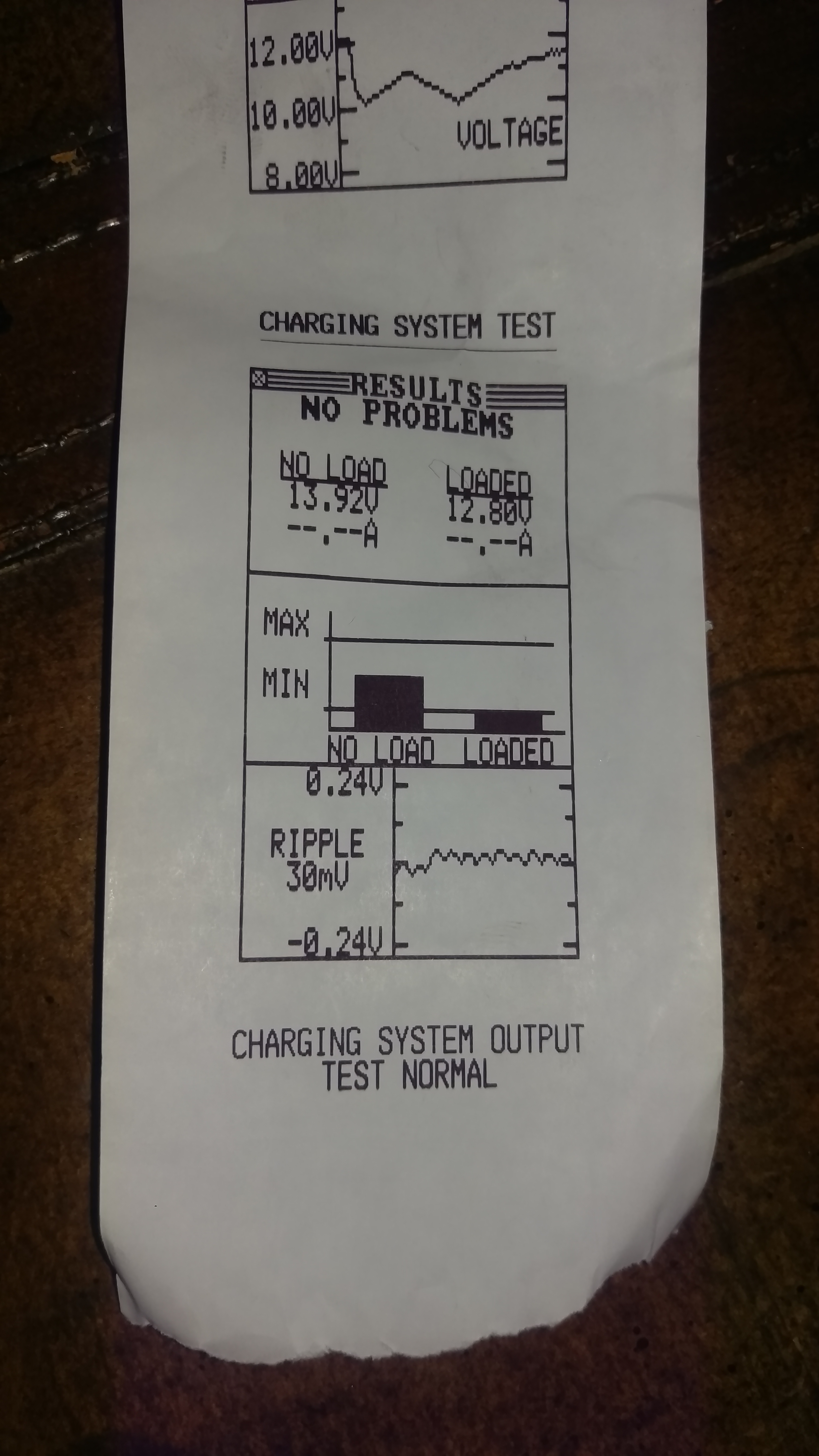 runs the system check, everything is still checking out fine, he recommended me taking it to a shop to get it hooked up to some machine where it can check the car'* electrical system.