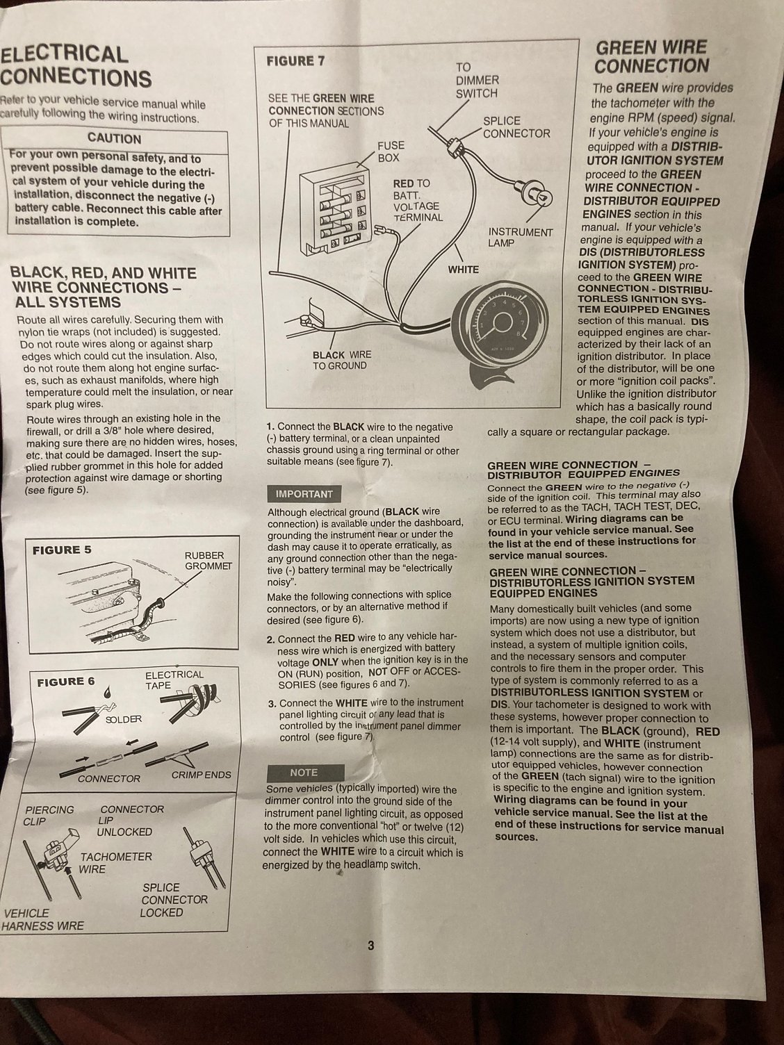 Default Tachometer installation 3.3l v6