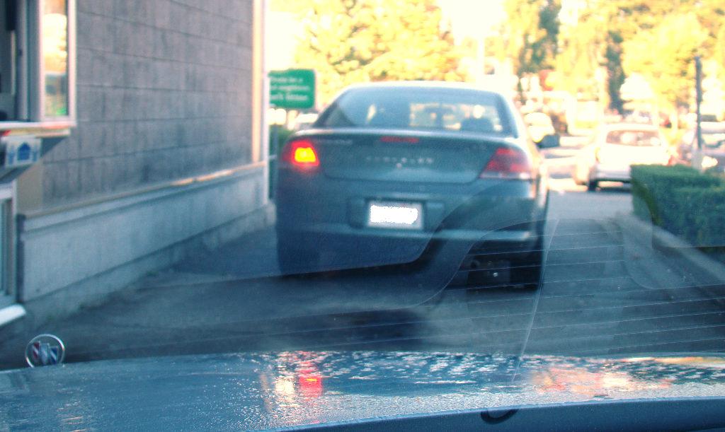This Am while at the coffee drive thru, here is a driver that has driven out of state 1000 miles with only one working brake light. No one pulled her over, or told her yet? Really..ever heard of a pre-trip? One of her tires were low as well. (stay at home use your bicycle!)