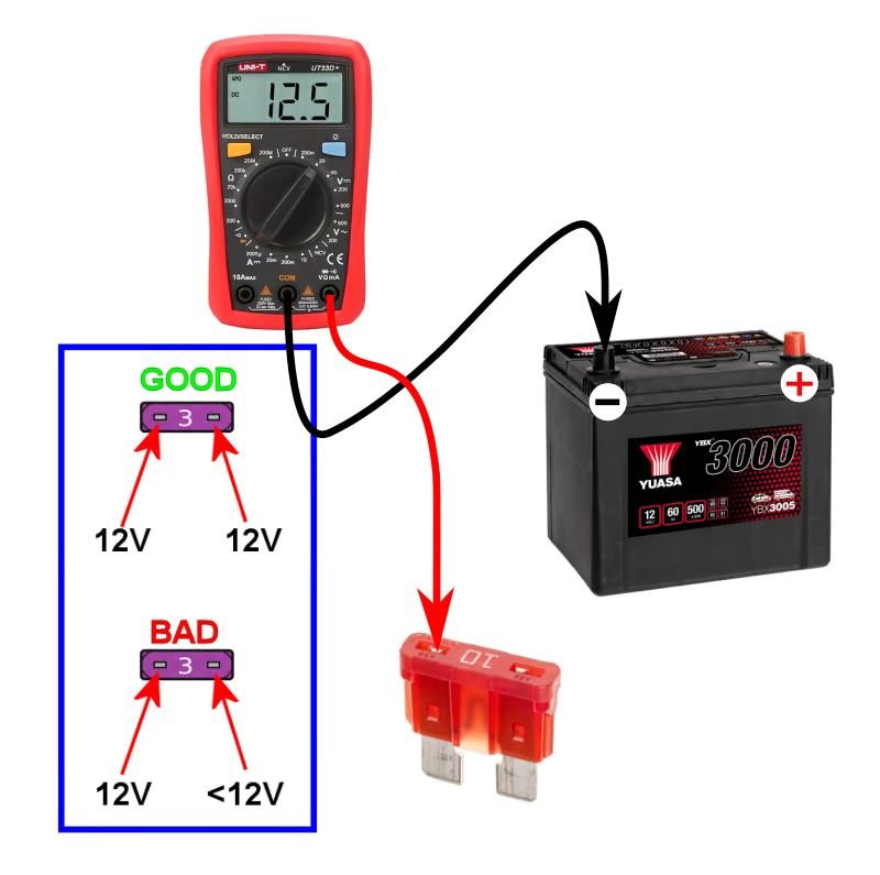So 12V on both sides of each fuse? . . . or did you do a continuity check on each one?