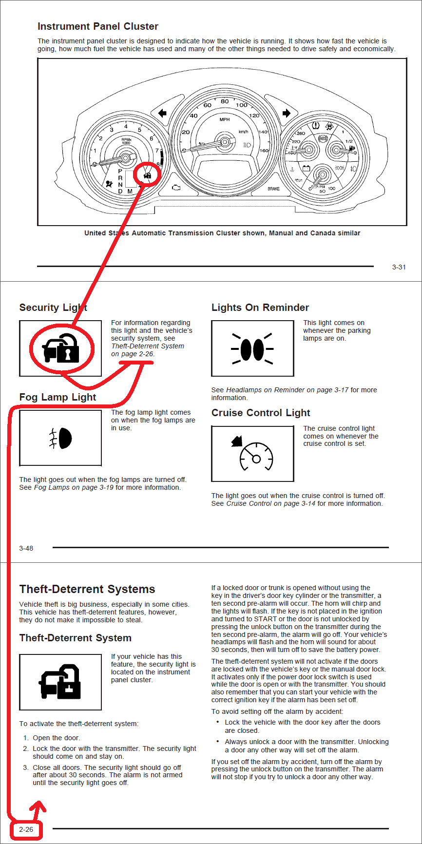 If it is doing this, it should show a padlock in the gauge cluster. From your owner'* manual: