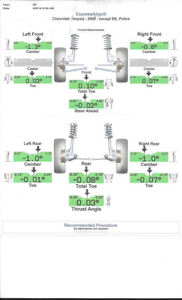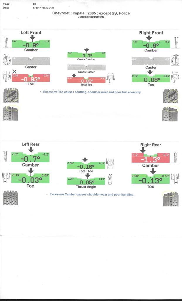 Always nice to get new tires and an alignment, I wish the spec sheet from my last alignment looked that good, I like the detail, mine was a basic printout..