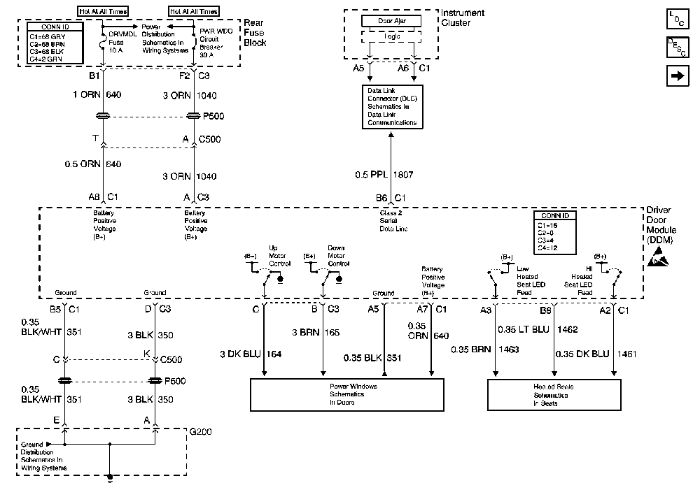 Simple Bus Interface (SBI) Serial Data Line SBI does not communicate with the scan tool via the DLC. SBI information is interpreted by the driver door module (DDM) and transmitted on the Class 2 data link by the DDM. The simple bus interface (SBI) is used for serial data communication between the four door modules as well as the driver door switch assembly (DDSA) . Edit - OK, some schematics. This is for the left rear door module - the right is similar. Pictures are larger than I'd like, but had to be in order to see them well enough. Attachment 49333 Driver's Door Module Attachment 49334 Simple Bus Interface. Attachment 49335 I'd lean toward the driver's door module, or wiring at this point, but that's not a definate diagnosis. The instrument cluster appears to have separate logic (I'd guess just on/off toggles) for it that could also enter into the equation. |