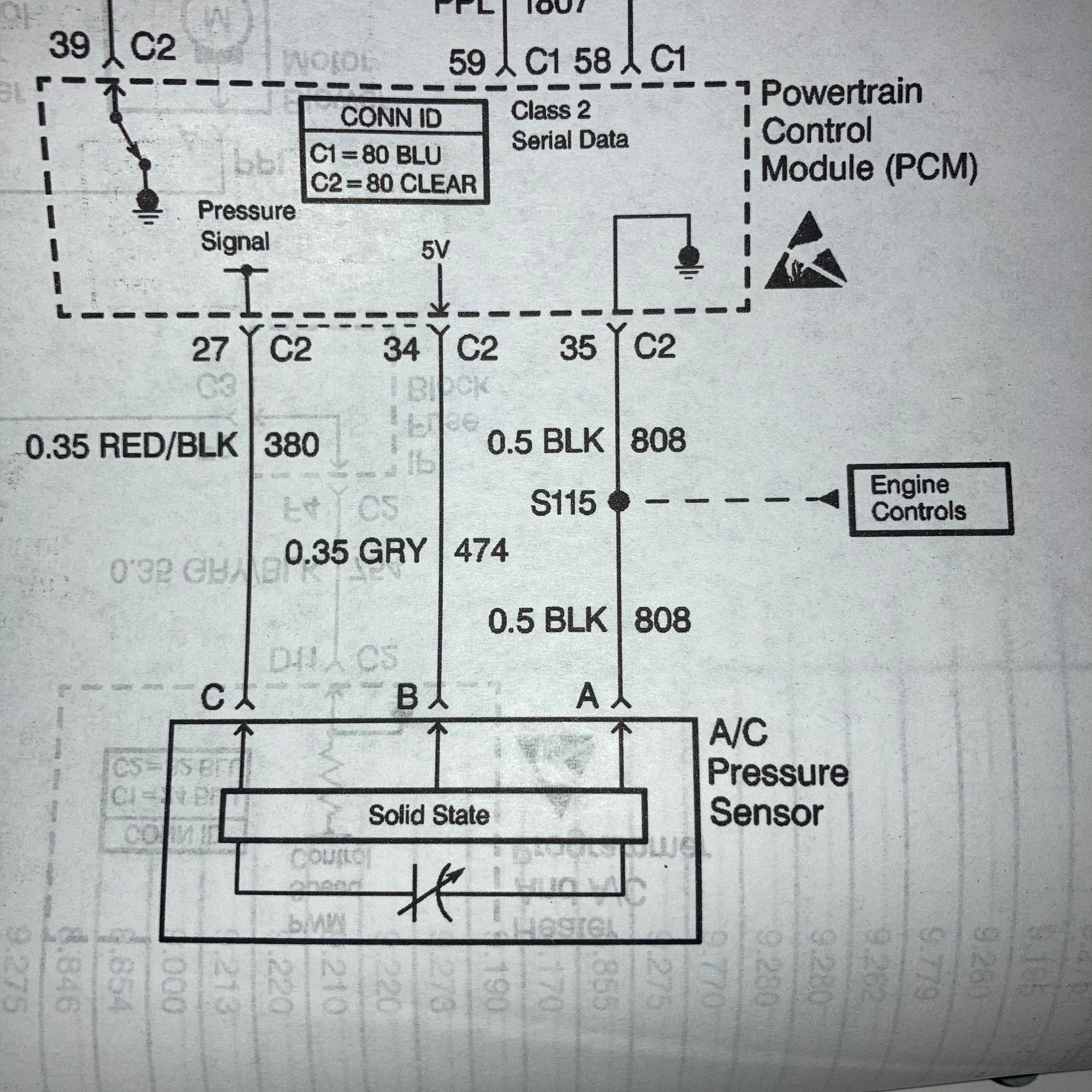 Here’s the diagram. I actually had a nick in the black wire which looks like the.. power signal? Idk how to read diagrams well. 5 volt gray is the reference circuit that if it gets pulled low then all 5 volt circuits are pulled low as they come from a shared piece on the pcm board