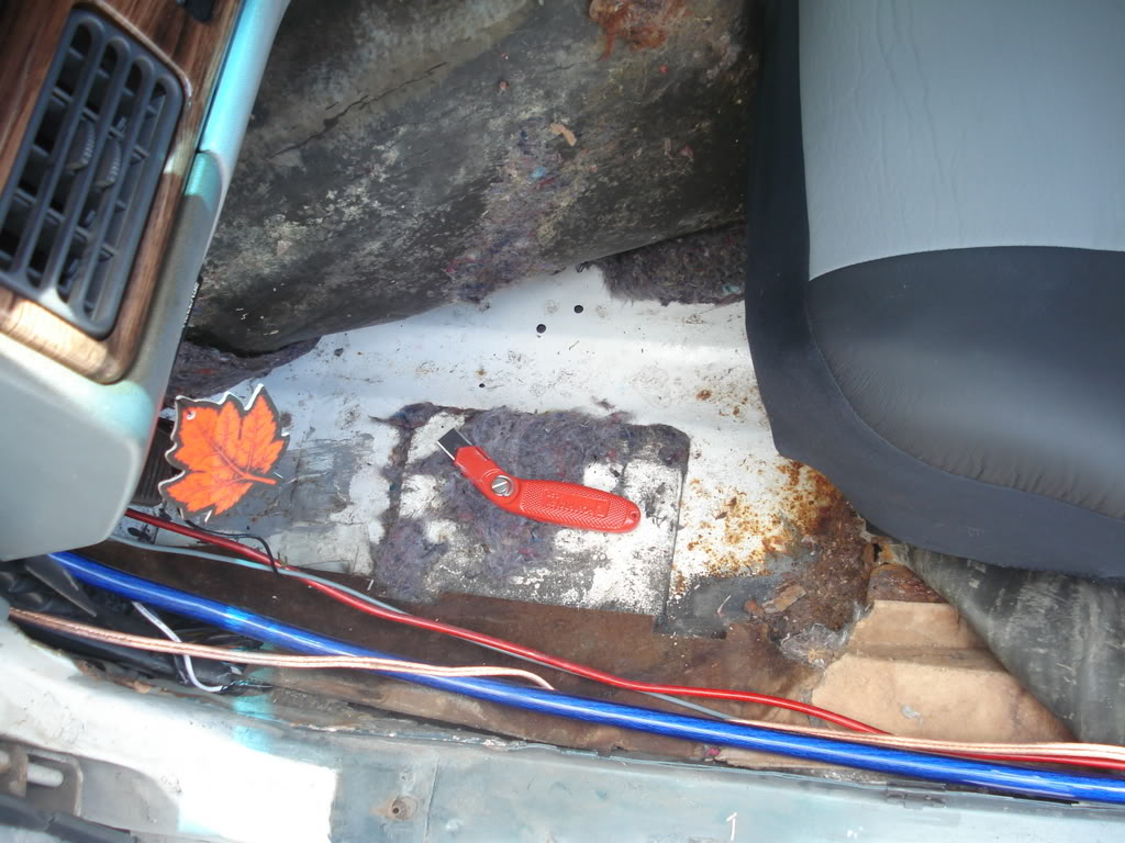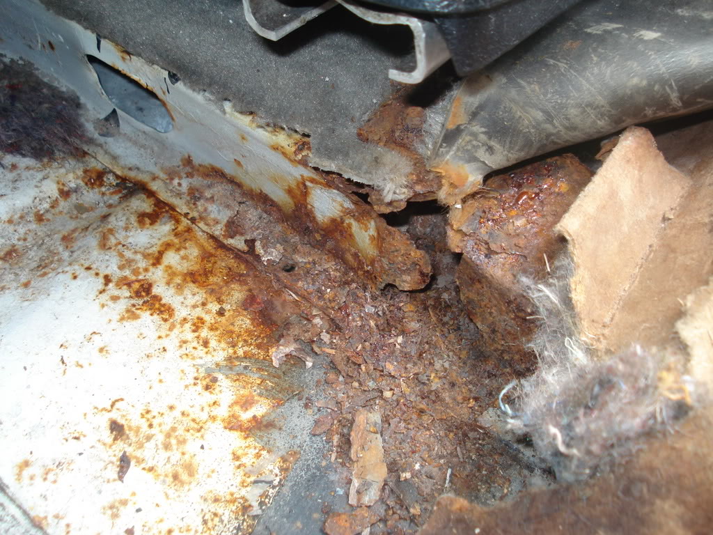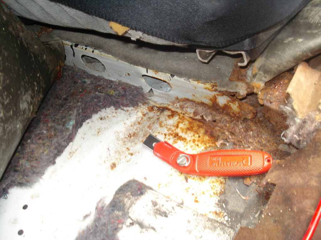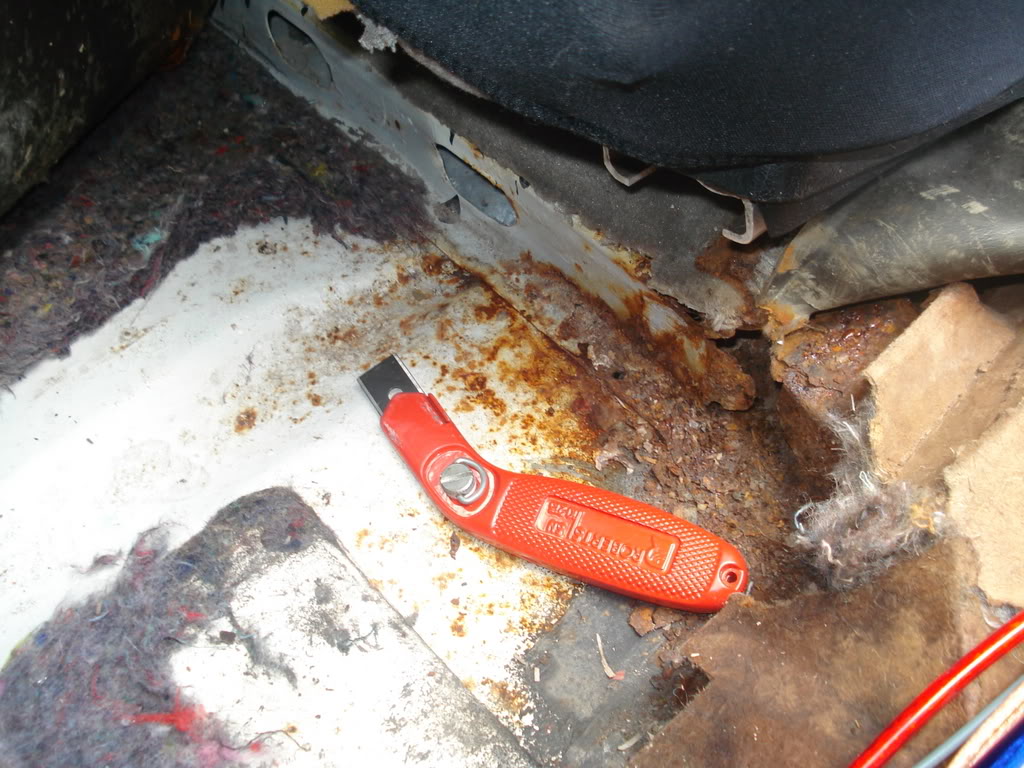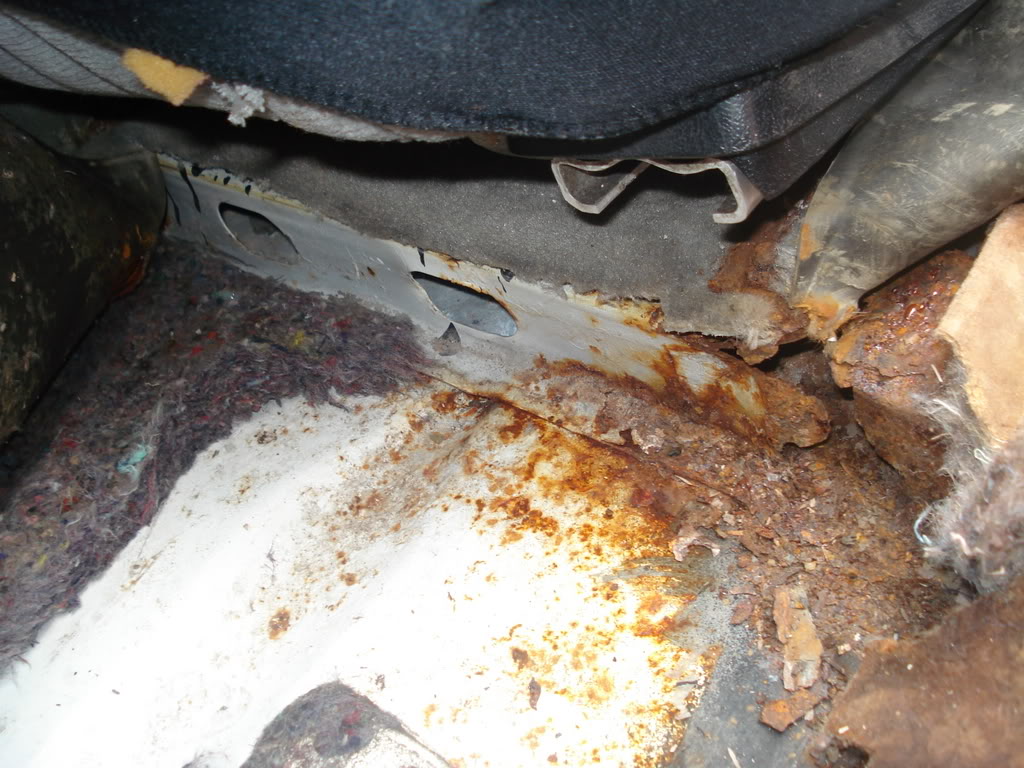 well, looks like things aren't too bad. If you want to look in the area to the left of the last picture and check there to make sure there is no rust, and also remove that last strip of brown whatever to check behind there, you can make sure it hasn't spread to an important part yet. The area it is in could easily be cut out and replace, although you'd have to re-tap the hole for the driver's seat, but you could make it with some good solid steal.