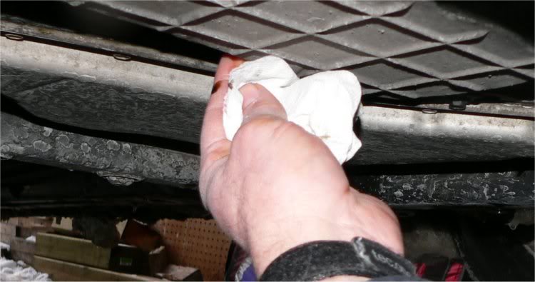 as well as the surface around the oil pan where the drain plug goes.