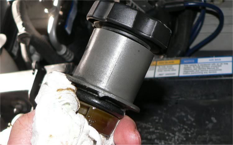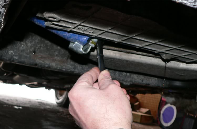 Once the plug is loose, remove it the rest of the way by hand. The oil
