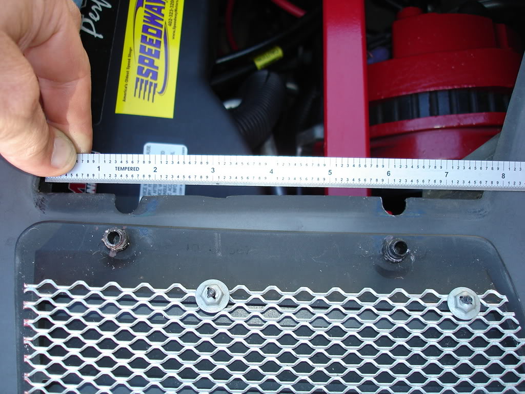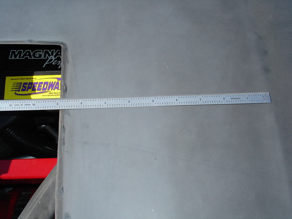 from 9" away from the wiper cowl end of the hood (near the windshield)