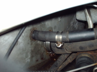 Now go to the driver side rear and remove the tire there you will find the filler hose and the smaller vapor hose. Loosing the hose clamps and remove the tubes from both sides I find it easier to remove the tube on the car side first then removing the tube from the tank then take a rag and plug the holes in the tank: