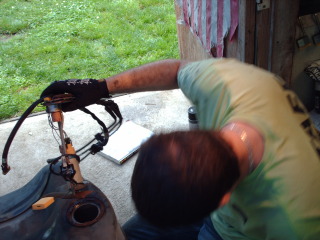 Once under you will see the straps that hold the gas tank in place Look for the mounting bolt and soak that sucker down with a penetrating oil.