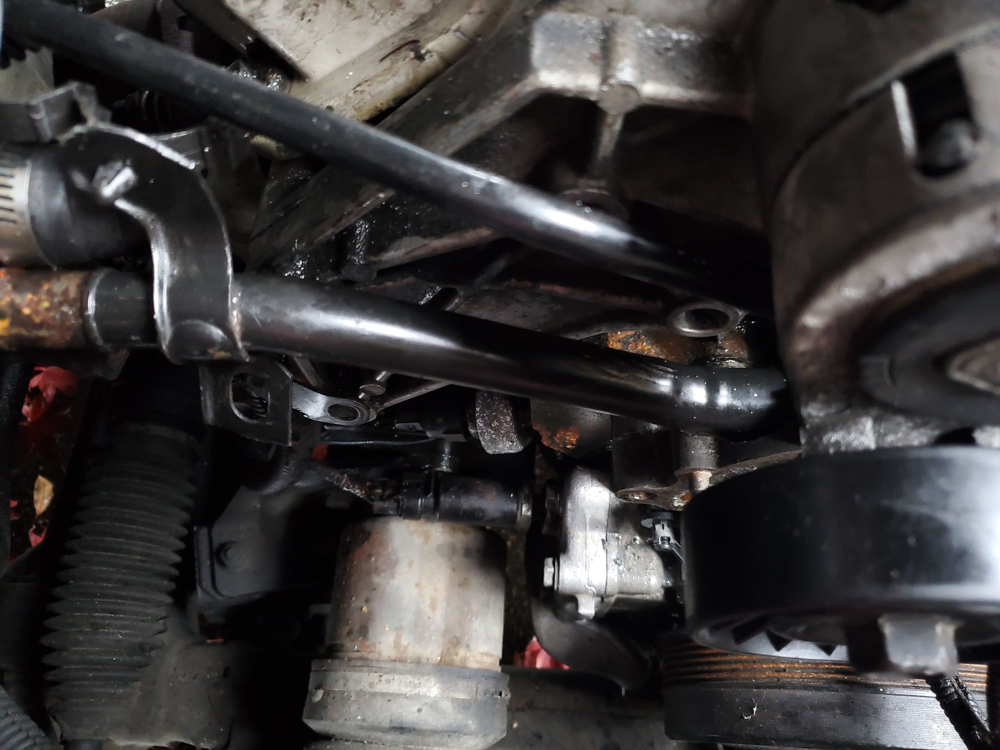 I'm stumped on heater coolant routing to water pump. Removing the retaining pulley you need to remove coolant lines that go to engine block and water pump. The one to engine block was easy to access by removing bolt holding tube bracket into block. The line to water pump I can not see anything that'* holding it in but it will not pull out.
