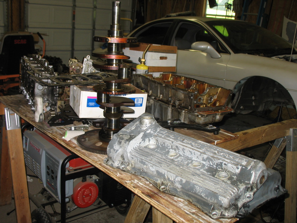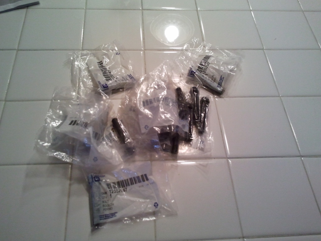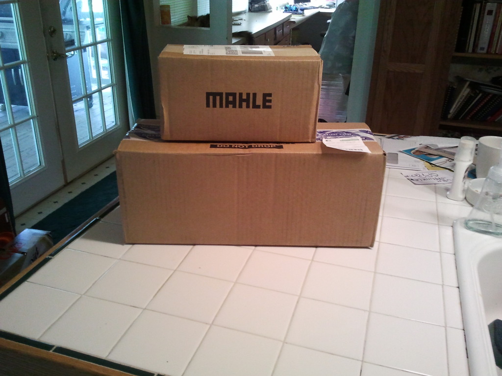 well since you guys have last heard ive pulled the engine. and long story short i found metal shavings in the oil pan of the new engine. so since i have a nice car to drive anyway i might as well take on the task of rebuilding it. ive bought just about everything i need, finally ordered the head stud kit today. here are some pics.