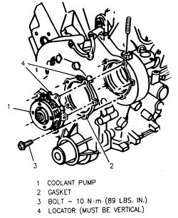 Water pump with a new gasket. Torque the bolts to 89 inch lbs. (10 Nm).