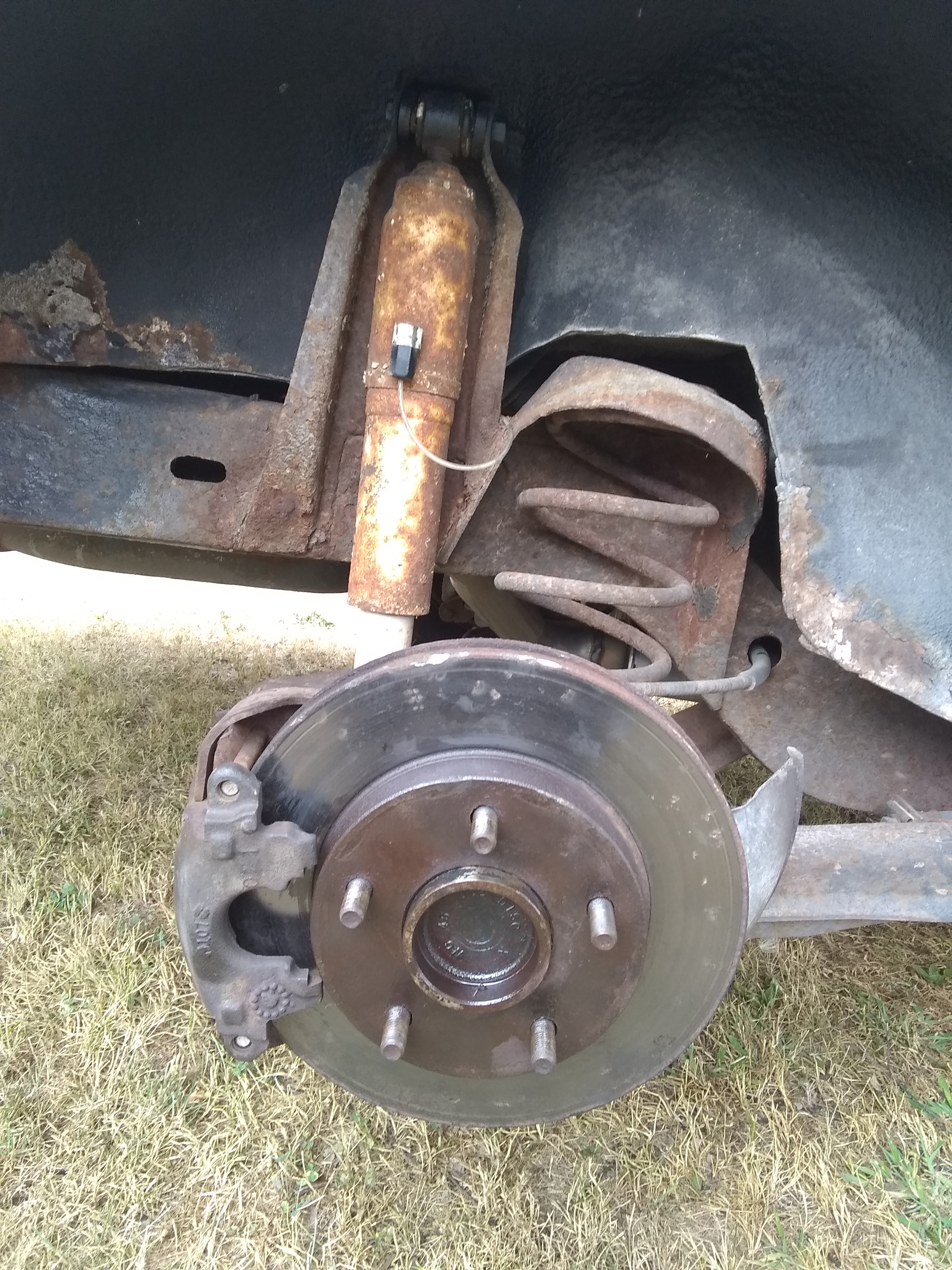 Yesterday when he was doing this he had the caliper and the pins taken off in order to remove the pads. They were hanging to the side. So they we're not still on when he tried for about 2 hours to bang the rotor off. The the only reason they are on in the picture is because he had put it back together because he did not want everything getting wet as we were expecting a storm.