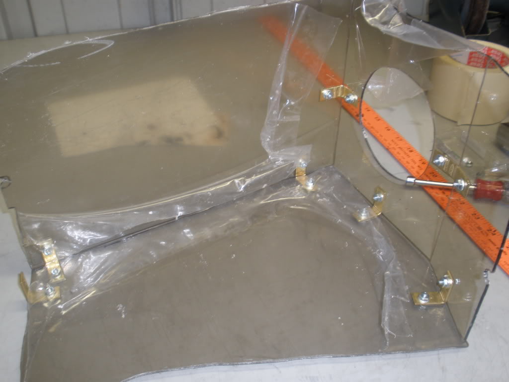 I then removed the protective masking from the Plexiglas and placed the box in place. I then used a angle brace to mount it to the body of the car.