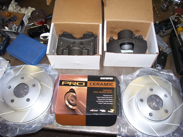 but considering everything i have done to the car in the past 6 months, it was worth it (ill just shop around more next time :lol: ) here's what i started out with. you cant see it but the rotors were baddly stress cracked) and everything was a nice shade of RUST :? Attachment 47948 this is what i upgraded with, PRO Ceramic break pads. POWERSLOT rotors. new Delco calipers and not yet done (but perchased already) Gloss Black Ceramic caliper paint Attachment 47949 step-by-step pics... 1 Removed the wheel, clamped and removed the break line. Attachment 47950 2 Removed the caliper, pads, and rotor. then removed as much rust as possible using various wire wheels and grining disks Attachment 47951 3 place new rotor on hub and hand screw one nut on to hold in proper place Attachment 47952 4 assemble the pads and calipers (not shown) and reinstall Attachment 47953 5 Blead breaks, then reinstall wheel, Step back and admire how much all new breaks look 8) (ill black out the strut rust when i do the caliper paint) Attachment 47954 * Random over exposed shot, yes it needs a bath :lol: * Attachment 47955 |