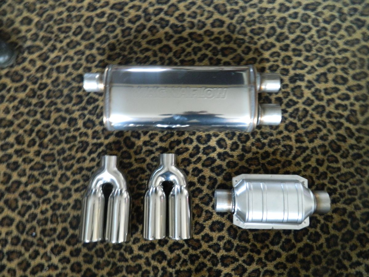 Magnaflow hi-flow Cat... part number 94106. This is 2.5 in and out (which I believe is stock, right?).