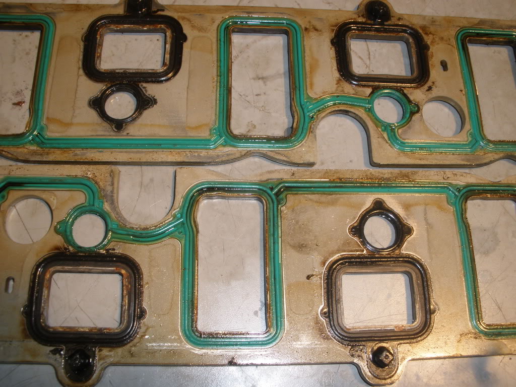 First up, a LIM gasket failure. This is a plastic framed gasket, standard on our engines. Running Dex-cool, again, standard on our engines. For about 95,000 miles. Please note there is green coolant in this engine. I had flushed the system shortly before changing the gaskets. Attachment 26060 Here is a close up. This is a classic failure. The belief is, Dex-cool was acidic and caused the gaskets to soften and fail. Attachment 26061 The common fix for this was to drain, flush and refill your coolant system with a common green coolant. The problem with this is if you don't get all the Dex-cool out, it will react with the new green coolant and sludge up. This here is the same style of plastic framed gasket. The difference here is this is about 12,000 miles using Peak green coolant. As you can see, there is a classic failure starting. Attachment 26062 It is obvious that changing coolant did not correct this problem. Now, these gaskets are the new aluminum framed gaskets. These were from a engine running Dex-cool. As you can clearly see here, there is no sign of classic failure. Attachment 26063 It should be clearly obvious that changing the gaskets to the new aluminum style fixed this problem. This article has been presented to you to help you make a good, educated decision on what is best for you engine. It is my advice that changing the LIM gaskets to the aluminum style is the best choice. There is no reason to change your coolant type. Don't fall in to the hysteria that you must change your coolant. What you do with this information is totally up to you. I will keep adding more images as they come in. Plastic framed gaskets with Dex-cool, unknown miles. This gasket has a slightly different design then earlier gaskets. Attachment 26064 |