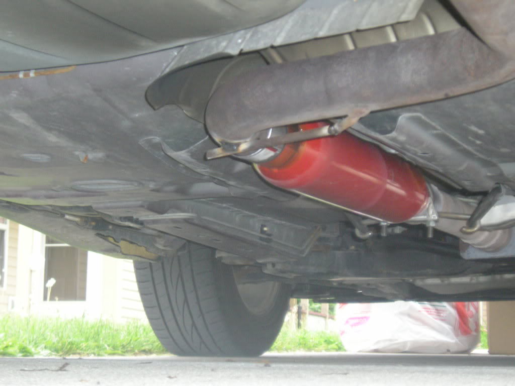 Attachment 28955 I'm not sure how stock they are or which car had them, but I can tell they have been sandblasted, and there are pipes in the back welded at odd angles. They look really nice, and when they're up against the bumper, they conform to the shape very well. Attachment 28956 Attachment 28957 In this picture, they're just hanging. They look odd when low, but they are nice when they are up a bit. Attachment 28958 And now, the rearview mirror! This is awesome, and it makes driving safely almost breezy. Attachment 28959 Attachment 28960 Attachment 28961 I tried to do one of those really cool, unscientific experiments. I sprayed 500º F engine aerosol paint onto some exhaust pipe to see how it would hold up. After some undocumented amount of miles, the primer gray turned to a slight tan. I'm not sure what that means. So, lesson learned: Don't use engine paint on the exhaust pipes. Attachment 28962 Also, I got a Cherry Bomb resonator. It has a more porous inside than the OE resonator that I had before, and it's about 2" longer. This is the longest Cherry Bomb I could find, and I paid about $20 for it at Advance Auto Parts. Yet another unscientific test relatively confirms that with this resonator, my exhaust is even quieter than before. This test was actually done after I ran for almost a whole 24 hour period with just the resonator and no muffler. I put on about 180 highway miles with drone. People kept trying to get out of the way, and it was so awesome to be able to drive straight without changing lanes or tailgating slow drivers. I'm a horrible person... Attachment 28963 Attachment 28964 To illuminate my work area, I used a 48" fluorescent lamp. It was nice! Attachment 28965 I put in a 3" Hogan downpipe. It has two new gaskets, for both sides, and one is very shiny. Worthy of a picture, I think. Attachment 28966 See all the PB Blaster stuff on the ground? I spent about 6 hours struggling with nuts and rods and also clamping on the resonator. The clamping wasn't hard, but it was done during these six hours. Anyway, the nuts on the exhaust manifold's rods that hold on the downpipe were so stuck that I broke loose the rods trying to get simply the nuts to move. It was an awesome experience working for 6 hours in the night and trying to loosen two nuts. Lots of fun. Attachment 28967 Attachment 28968 So, after my ricing experience with just a resonator after a 3" downpipe, I had my welding friend come over. There's an OE rod welded onto the exhaust, and it apparently provides some structural integrity. I had to move it because of the added resonator length. Attachment 28969 You can here see the primer-turned-tan color: Attachment 28970 Attachment 28971 And some more pictures now: Attachment 28972 Attachment 28973 Attachment 28974 Attachment 28975 Attachment 28976 Attachment 28977 Attachment 28978 Attachment 28979 Look at this smoke! Attachment 28980 More unscientific experimentation: A new way to hold on an exhaust tip so that it doesn't move during welding. Attachment 28981 Attachment 28982 Attachment 28983 |